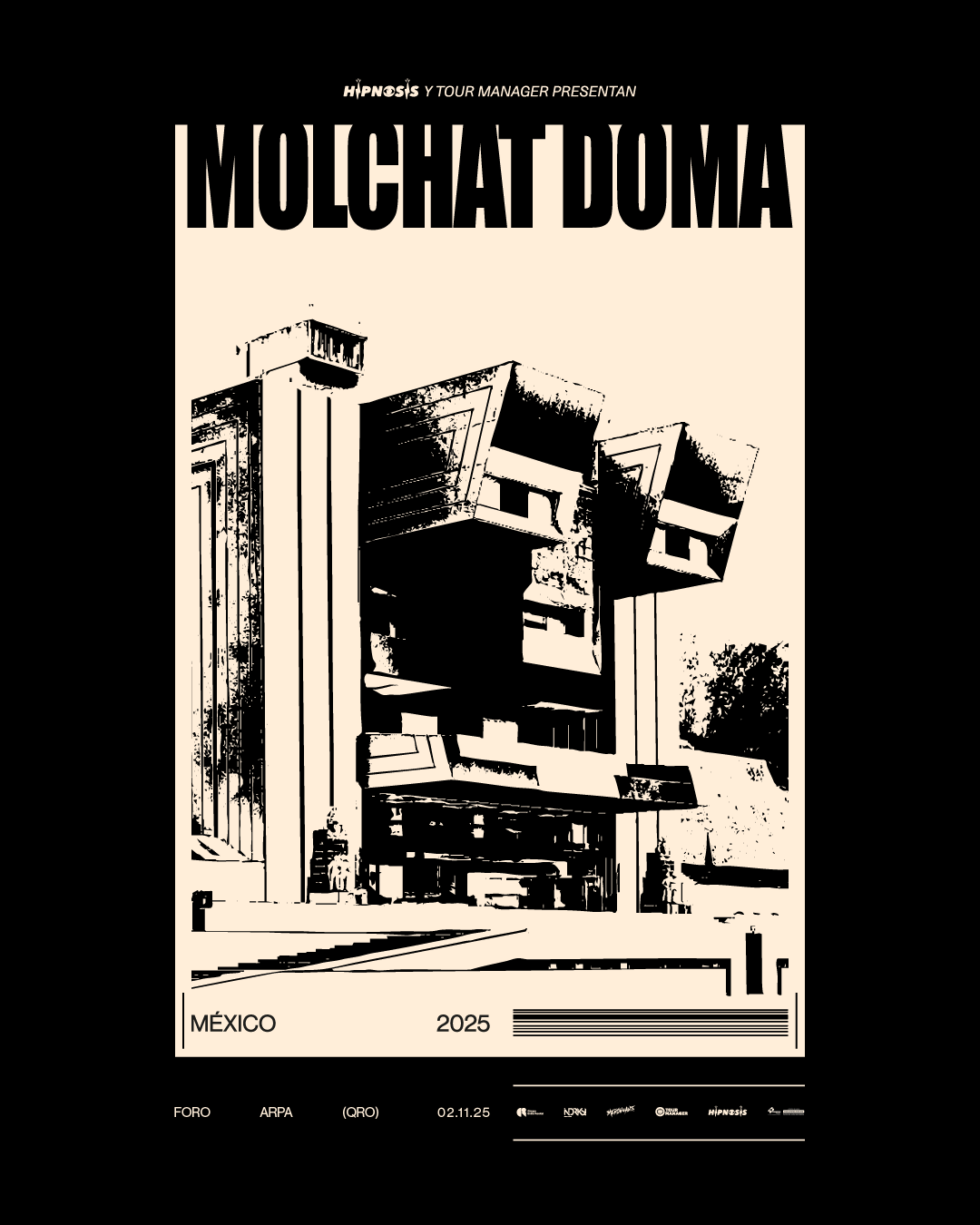 En este tour, Molchat Doma presentará en vivo su nuevo material discográfico, Belaya Polosa. El álbum mantiene su atmósfera oscura y minimalista, con influencias directas del post-punk de los 80, sintetizadores fríos y una narrativa que refleja la vida urbana contemporánea.