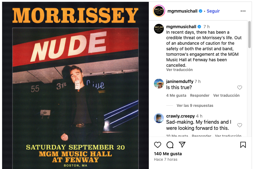 Conciertos cancelados por seguridad: Morrissey prioriza su vida